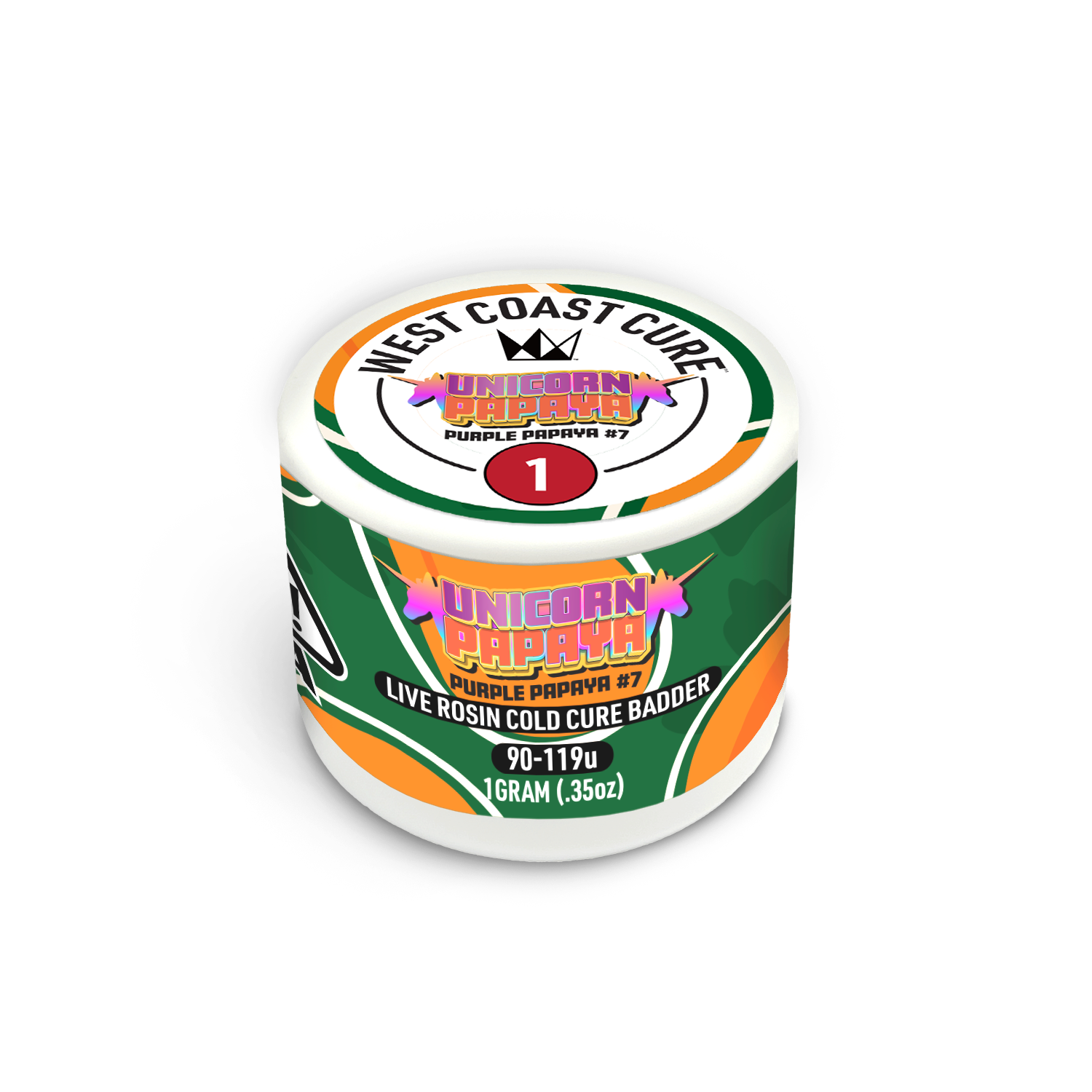 Unicorn Papaya 1G Live Rosin Cold Cure Badder is a Tier 1 flex from the WCC x Master’s Makers collaboration. Sourced from Mattole Valley Sungrown, this exotic cross of Purple Punch x Papaya was washed in the 90-119u micron range to isolate the most pristine trichome heads. Expect a loud, candy-sweet aroma that hits the palate with a unique, juicy papaya flavor.
