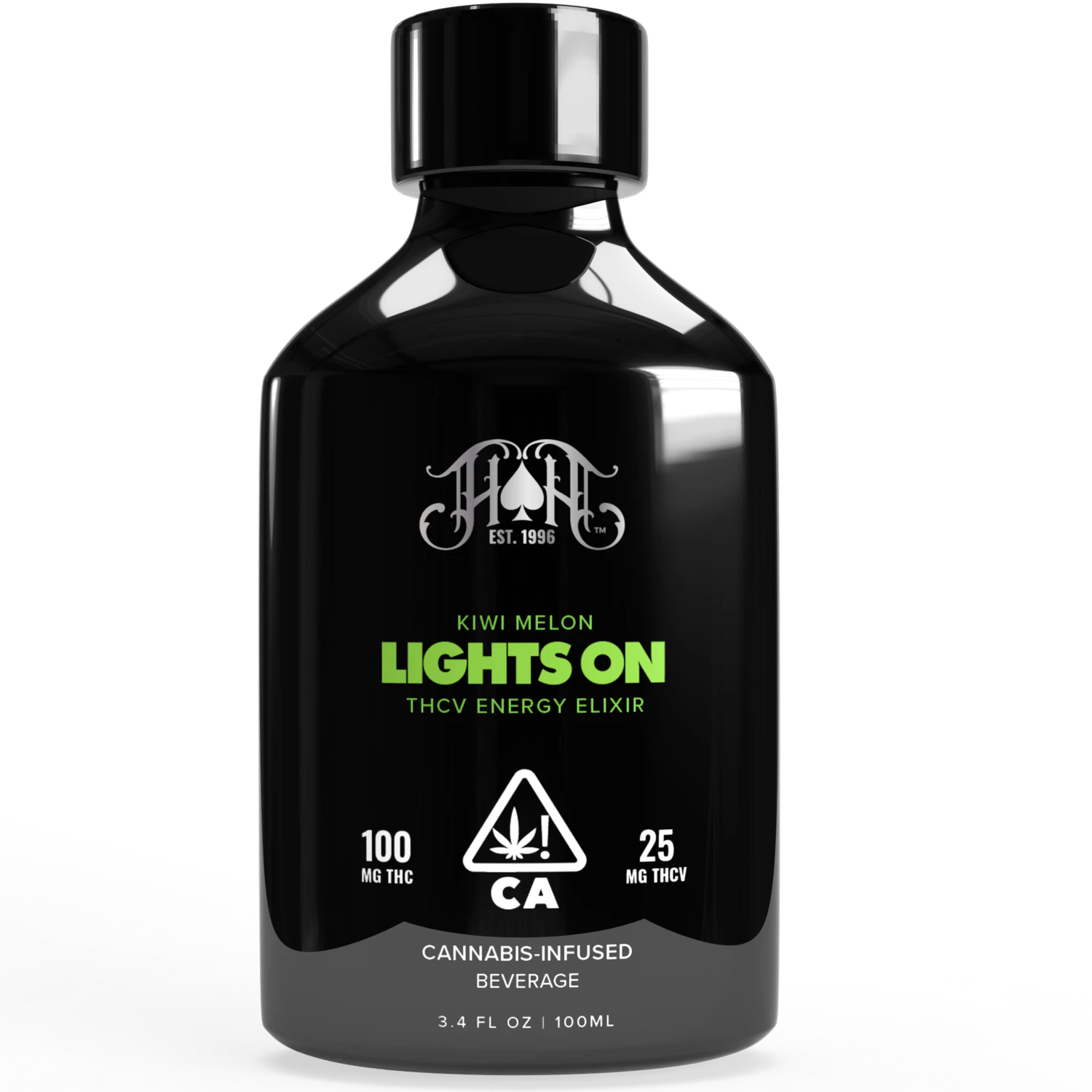 Introducing Heavy Hitter's Lights On Energy Elixir. Each Energy Elixir is packed with 100mg of THC, 25mg of THCV, and 100mg of caffeine to ignite your senses and unleash a wave of uplifting energy. Delivering a patented fast-acting formula and available in a sleek, low profile design, these Energy Elixirs are your ultimate on-the-go companion that slide effortlessly into your daily routine. Pure, potent, and powerful, experience best-in-class cannabis with Lights On Energy Elixirs.