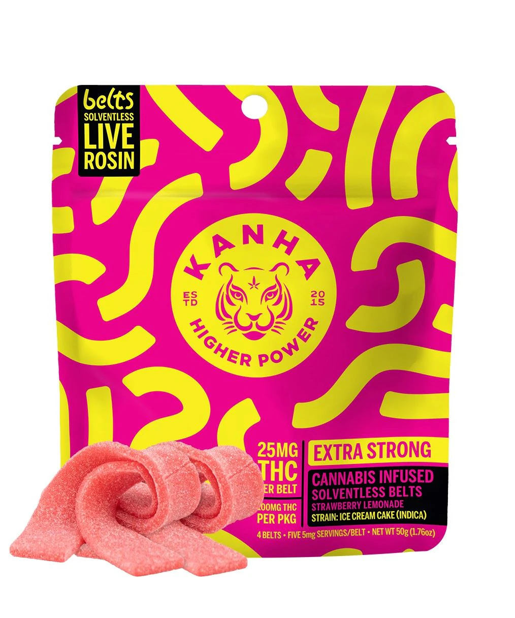 Relax and unwind with our Strawberry Lemonade Belts, a bold Indica blend for the kick back connoisseurs. Enhanced with Ice Cream Cake solventless live rosin for deep relaxation and euphoria.