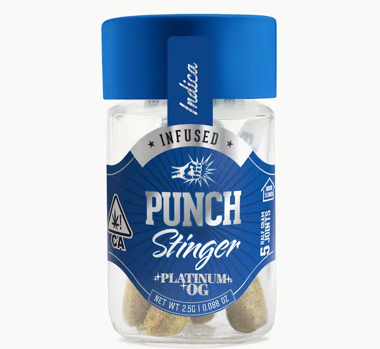 Try our Punch Stingers, a jar of 5 mini pre-rolls infused with Platinum OG flavor, Infoor flower and rolled in kief. This indica strain delivers a deeply relaxing experience, perfect for unwinding. Each mini joint offers a potent and flavorful smoke,leaving you in a state of blissful relaxation. Enjoy the convenience and premium quality of Punch Stingers for a truly enjoyable cannabis experience.